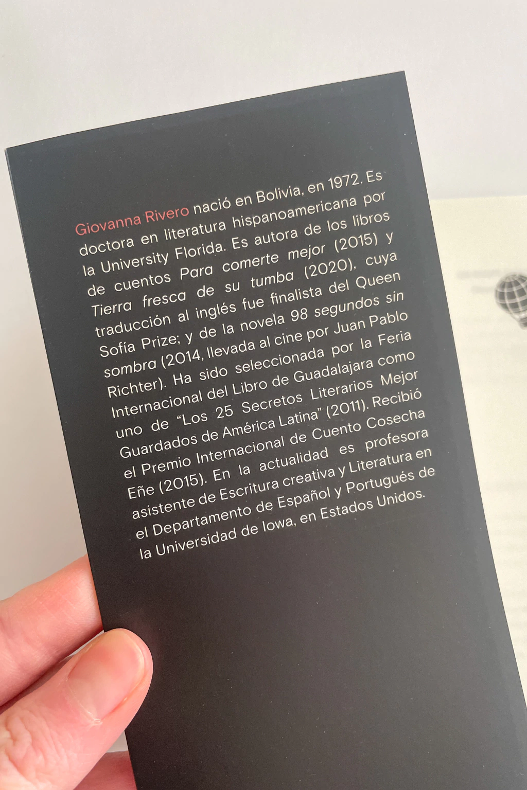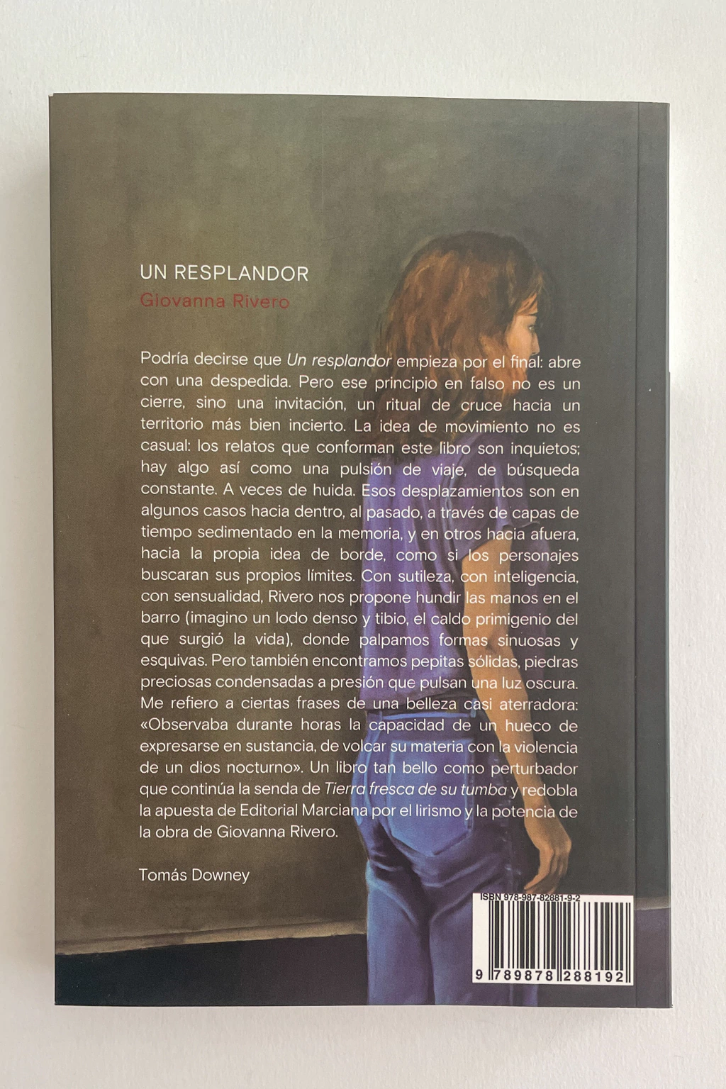 Podría decirse que Un resplandor empieza por el final: abre con una despedida. Pero ese principio en falso no es un cierre, sino una invitación, un ritual de cruce hacia un territorio más bien incierto. La idea de movimiento no es casual: los relatos que conforman este libro son inquietos; hay algo así como una pulsión de viaje, de búsqueda constante. A veces de huida. Esos desplazamientos son en algunos casos hacia dentro, al pasado, a través de capas de tiempo sedimentado en la memoria, y en otros hacia afuera, hacia la propia idea de borde, como si los personajes buscaran sus propios límites. Con sutileza, con inteligencia, con sensualidad, Rivero nos propone hundir las manos en el barro (imagino un lodo denso y tibio, el caldo primigenio del que surgió la vida), donde palpamos formas sinuosas y esquivas. Pero también encontramos pepitas sólidas, piedras preciosas condensadas a presión que pulsan una luz oscura. Me refiero a ciertas frases de una belleza casi aterradora: «Ese centelleo rabioso parecido a la la alegría y al temblor», «Observaba durante horas la capacidad de un hueco de expresarse en sustancia, de volcar su materia con la violencia de un dios nocturno». Un libro tan bello como perturbador que continúa la senda de Tierra fresca de su tumba y redobla la apuesta de Editorial Marciana por el lirismo y la potencia de la obra de Giovanna Rivero.